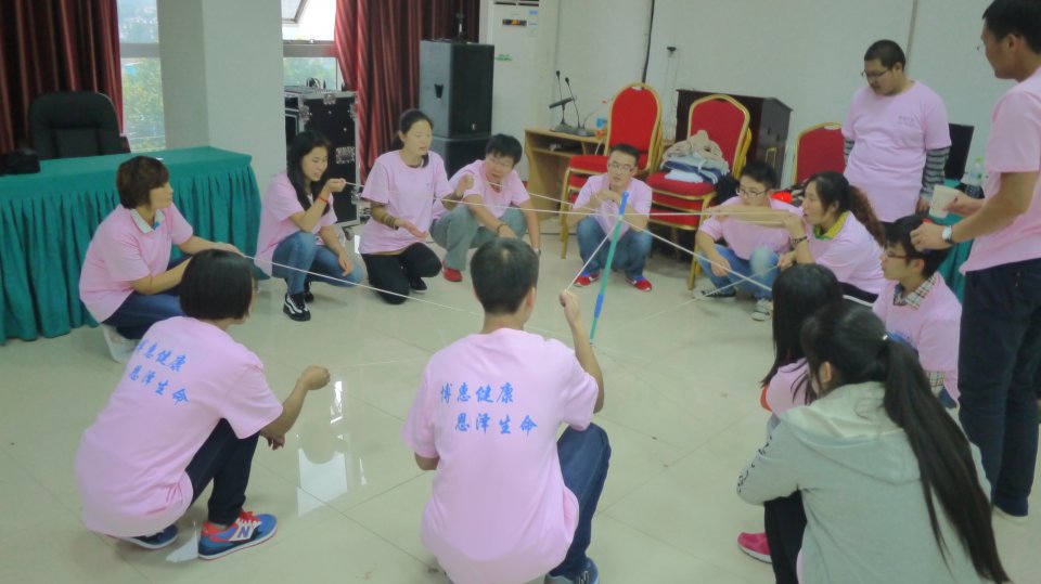 通过活泼并趣味性的拓展活动使学员减轻压力,放松心情,为明天充电
